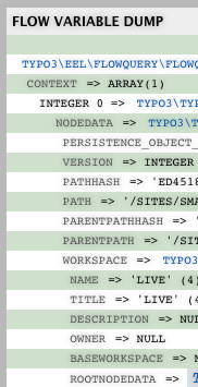 - Is there a difference in structure of returned value, when I use «node-name» or «identifier»? - Is there somewhere an overview in a part of docu, what I get back? And how I can work with the different returned objects/values? - And much more helpful: Is there some solution to format the <f:debug></f:debug> output/object from <f:debug> more eye-firendly?